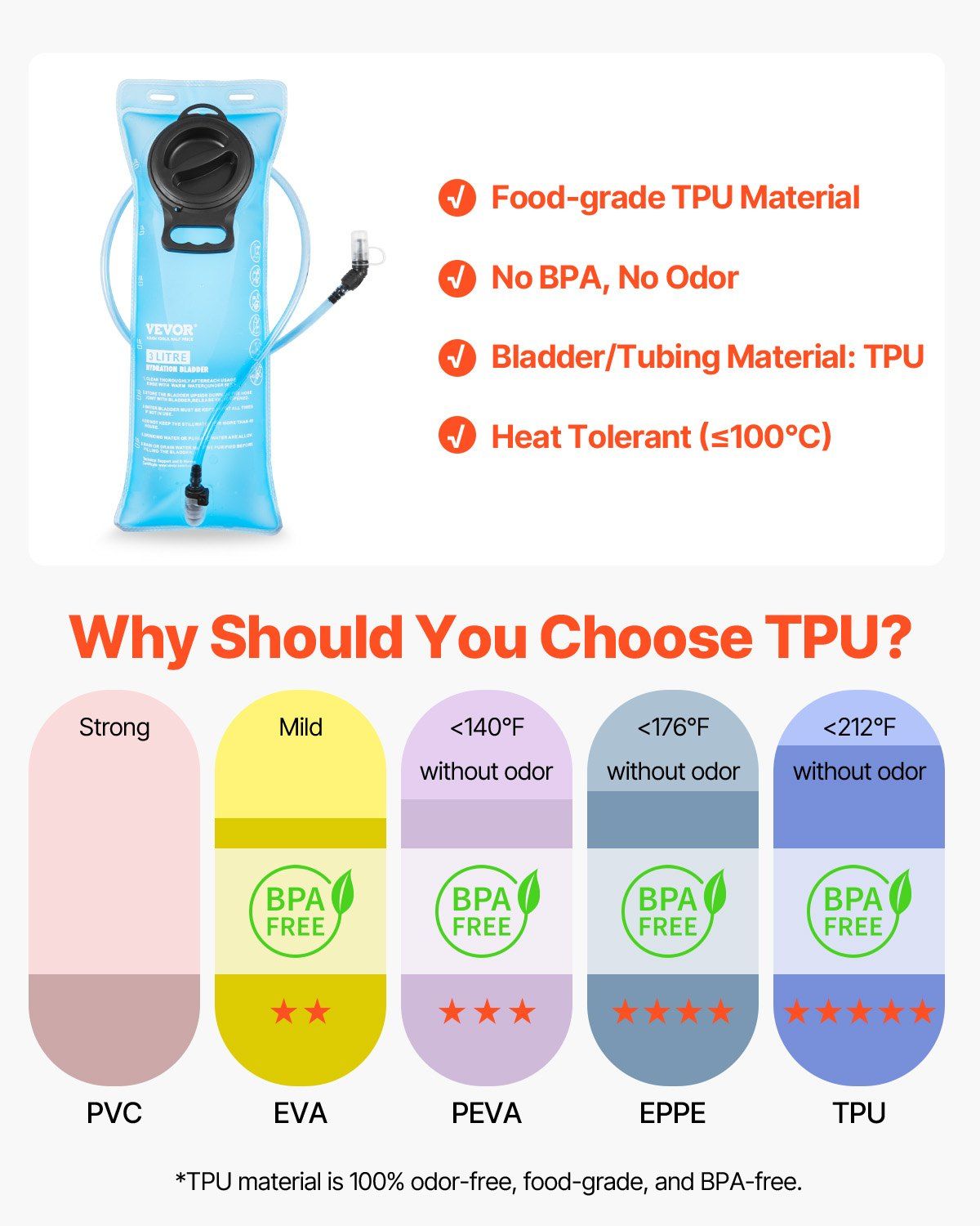 2.3L Practical Water Bladder: The hiking backpack with water bladder includes a food-grade TPU water bladder, ensuring a pleasant drinking experience. Its leak-proof automatic shut-on/off valve and sealed detection technology avoid leak risks, providing you with peace of mind.