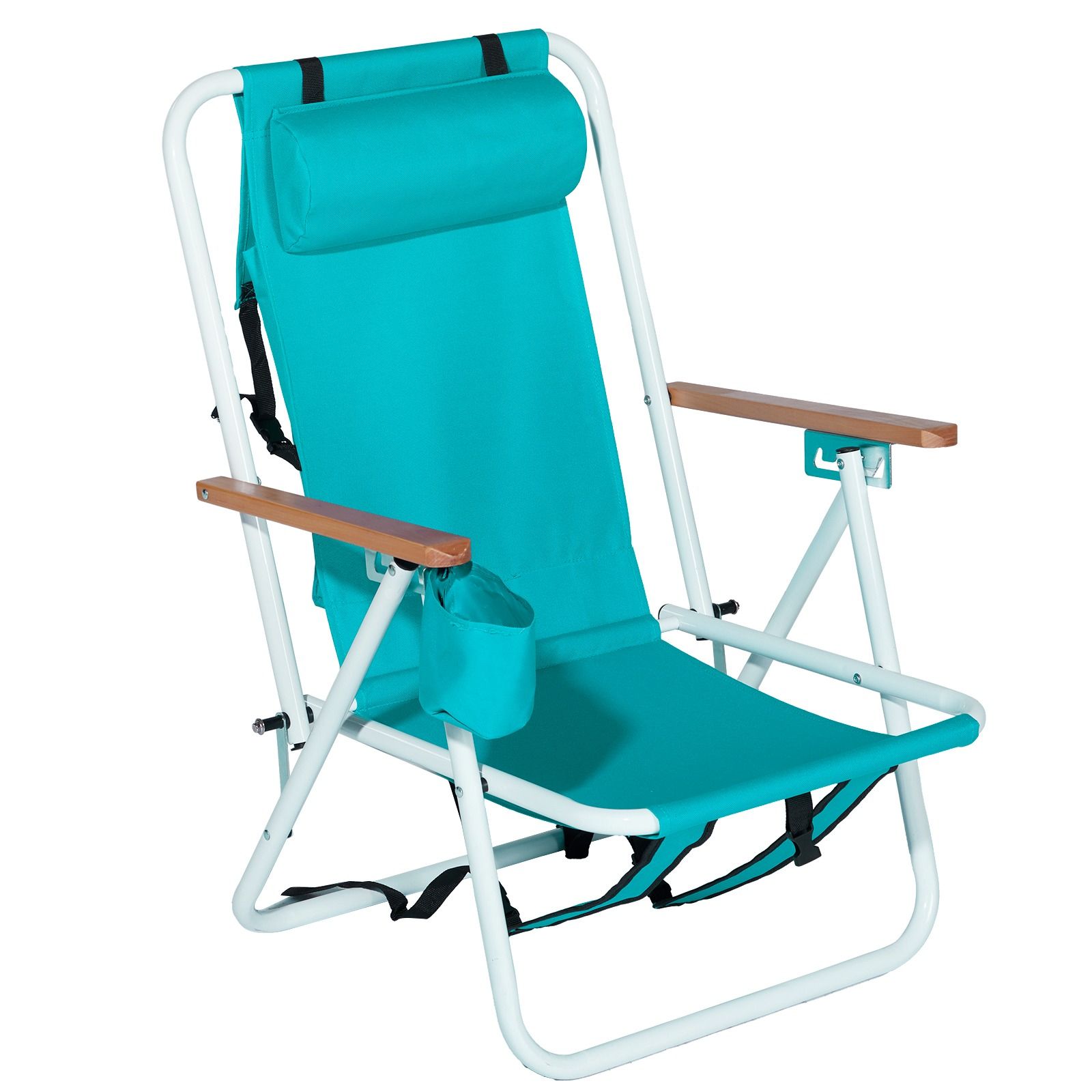 Home > Folding Beach Chair, 4-Position Portable Backpack Foldable Camping Chair with Headrest Cup Holder and Wooden Armrests