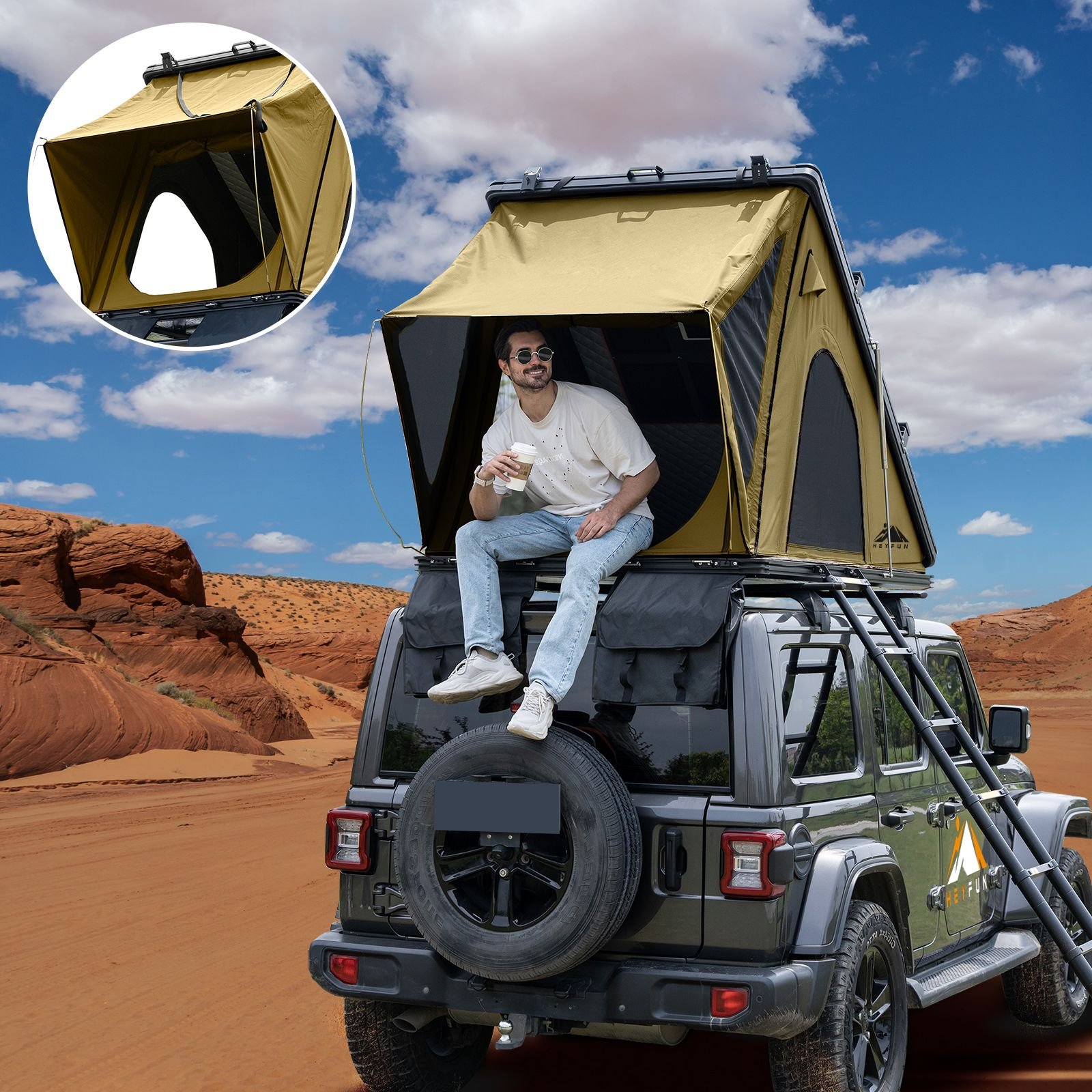 5. [HEYFUN Tent Warranty for 2 Years] - 30-day money-back guarantee for product returns. 2-Year limited warranty covering any manufacturer's defects from the date of purchase, excluding damage resulting from misuse. Lifetime accessory replacement support available. Friendly Reminder: Dry the Rooftop Tent thoroughly before storing it after use on a rainy day.