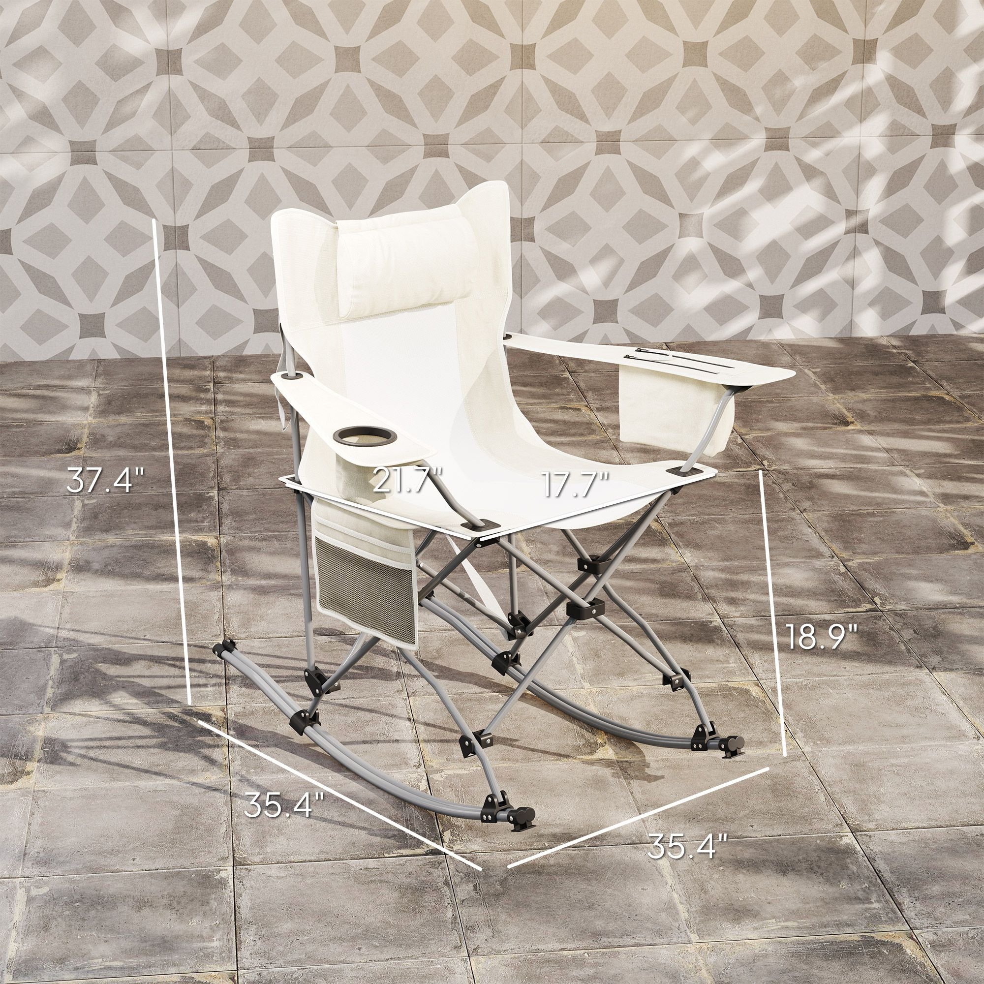 Discover the freedom and relaxation of the Outsunny rocking camping chair! The 90° to 168° range of motion lets you comfortably sway back and forth, while the breathable mesh and padded headrest keep you cool and comfortable. Featuring a convenient side pocket, cup holder, and cooler bag, this folding chair is ready to go for any outdoor retreat. Easy to transport and store, it's a must-have for every camping trip.